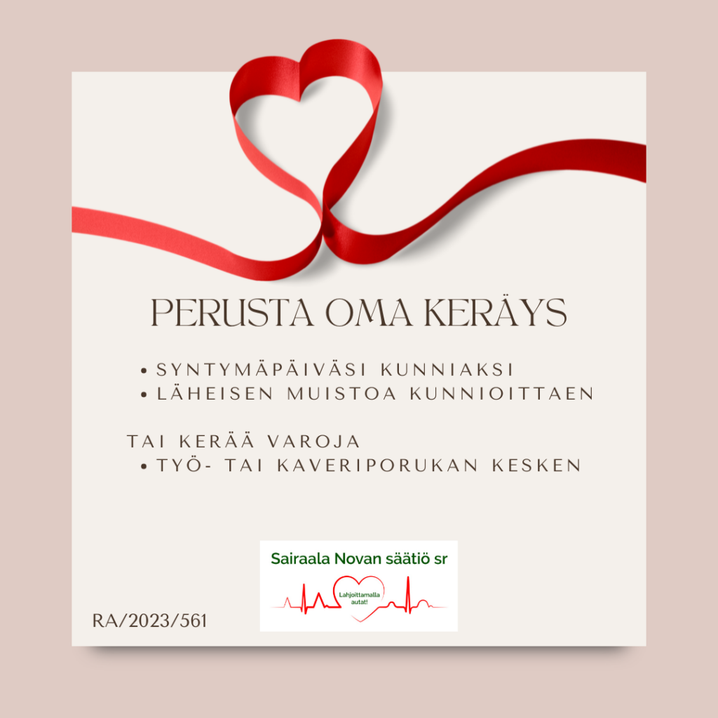 - keräyksessä käytetään Sairaala Novan säätiö sr rahankeräyslupaa